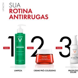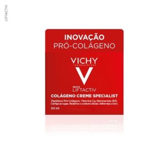 O Creme Redutor de Linhas Vichy Liftactiv Colágeno Creme Specialist é formulado com uma nova combinação de ingredientes, que inclui a Água Vulcânica Vichy juntamente com um concentrado de ativos dermatológicos, como os Peptídeos Colágeno Specialist, Vitamina CG e Niacinamida (Vitamina B3). Essa poderosa fórmula foi desenvolvida para aumentar a firmeza da pele, melhorar a uniformidade do tom, reduzir a flacidez e minimizar a aparência de rugas visíveis.