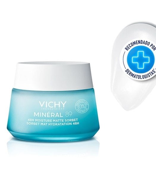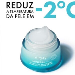 O Gel Hidratante Facial Vichy Minéral 89 Sorbet Mat Hydratation 48h reduz a temperatura da pele em -2°C, proporcionando um efeito matificante instantâneo! Sua textura inovadora em sorbet, leve e de rápida absorção, é perfeita para todos os tipos de cútis, inclusive as mais oleosas.